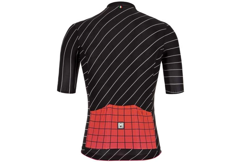 Santini Sleek Dinamo, maillot que ha vestido a ciclistas profesionales con el objetivo de buscar el rendimiento. La marca italiana estable el «entallado Sleek» como el más aerodinámico, idóneo para competición, ya que no solo se ajustará como una segunda piel, sino que se adecúa de forma excelente a las necesidades de transpiración y libertad de movimientos que el cuerpo demanda cuando la exigencia es máxima. Una prenda que nos ayudará a evacuar sudor y vapor de agua al exterior, vital para el buen correcto mantenimiento de nuestra temperatura corporal.